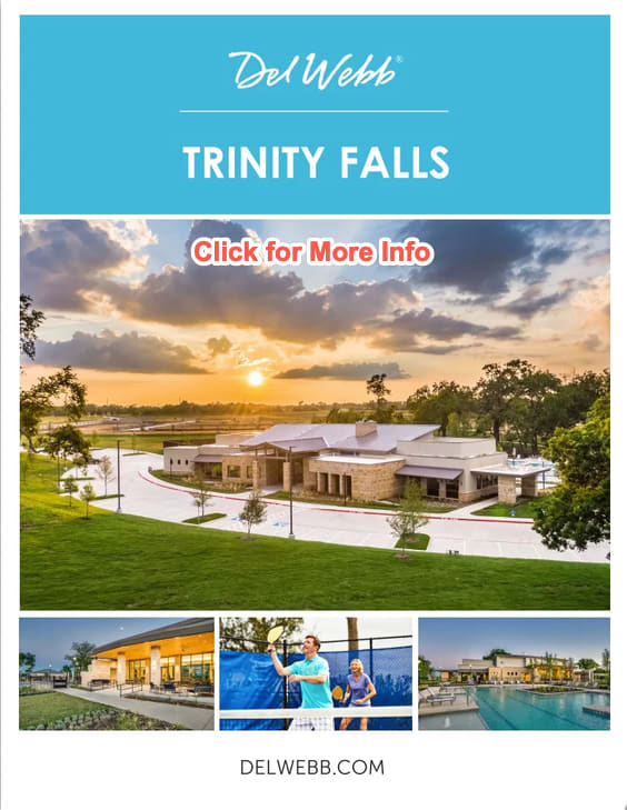 Del Webb is a vibrant, active neighborhood that offers a resort lifestyle. This 55+ community in Trinity Falls provides residents plenty of opportunities to get involved in numerous activities and stay active. From swimming and tennis to golfing and biking, there's something for everyone here! Plus, the on-site amenities make life easy. You can relax by the pool, catch up on work in the business center, or take a walk around the neighborhood. Del Webb is the perfect place for you if you're looking for an exciting and active retirement community!